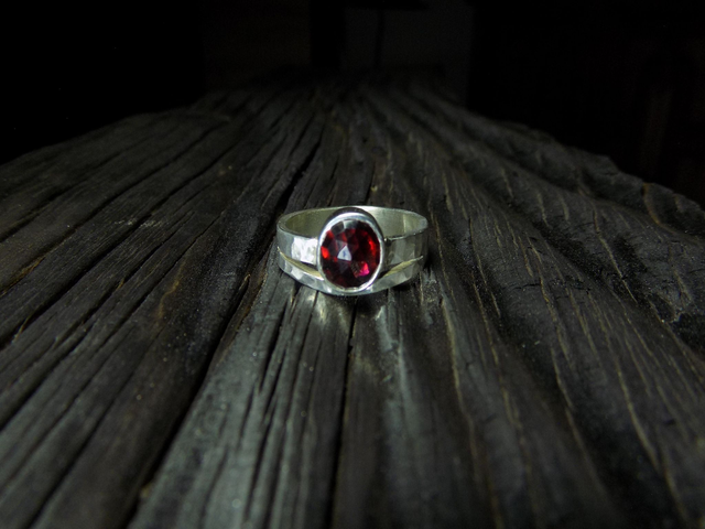 Pierre : grenat almandin naturel , taille rose cut , ovale 9*7 mm